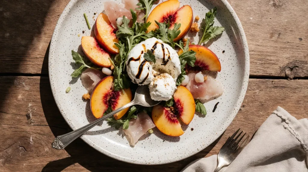 There’s a short window every year when peaches are good enough that you don’t want to hide them. They’re soft, fragrant, and sweet without trying. That’s usually when arugula shows …