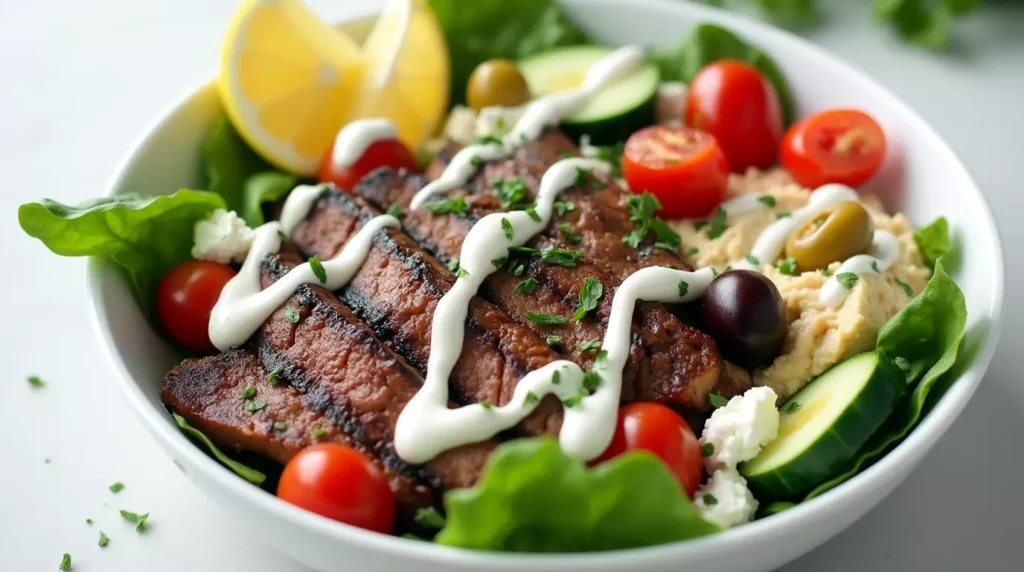 This isn’t just food it’s a story on a plate. A nod to coastal afternoons, a tribute to fresh markets, and a celebration of how far a steak bowl can go when you add a little Mediterranean flair. I hope you try it, tweak it, and make it yours.